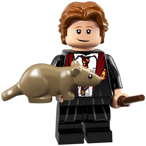 LEGO 71022 Harry Potter and Fantastic Beasts Collectible Minifigures Ron Weasley with Scabbers and wand. Each collectible minifigure is brand new factory sealed in its original mint condition foil pack complete with accessories, display plate, and collector's leaflet.