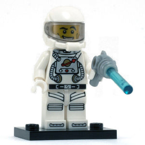LEGO 8683 Series 1 from 2010 Collectible Minifigure Spaceman with a helmet and a laser gun. Each collectible minifigure is brand new factory sealed in its original mint condition foil pack complete with accessories, display plate, and collector's leaflet.