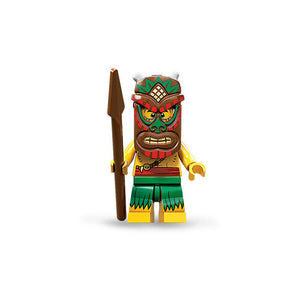 LEGO 71002 Series 11 Collectible Minifigures Island Warrior with a spear and a tiki mask.  Each collectible minifigure is brand new factory sealed in its original mint condition foil pack complete with accessories, display plate, and collector's leaflet.