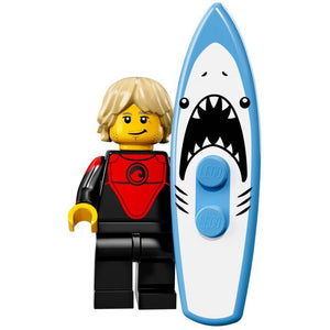 LEGO 71018 Series 17 Collectible Minifigures Pro Surfer with surfboard. Each collectible minifigure is brand new factory sealed in its original mint condition foil pack complete with accessories, display plate, and collector's leaflet.