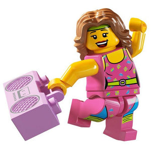 LEGO 8805 Series 5 from 2011 Collectible Minifigure Fitness Instructor with boombox. Each collectible minifigure is brand new factory sealed in its original mint condition foil pack complete with accessories, display plate, and collector's leaflet.