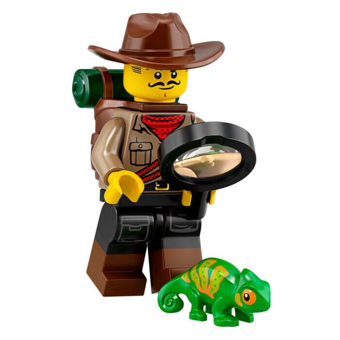 LEGO 71025 Series 19 from 2019 Collectible Minifigure Jungle Explorer with a chameleon and a magnifying glass. Each collectible minifigure is brand new factory sealed in its original mint condition foil pack complete with accessories, display plate, and collector's leaflet. Condition: Sea...