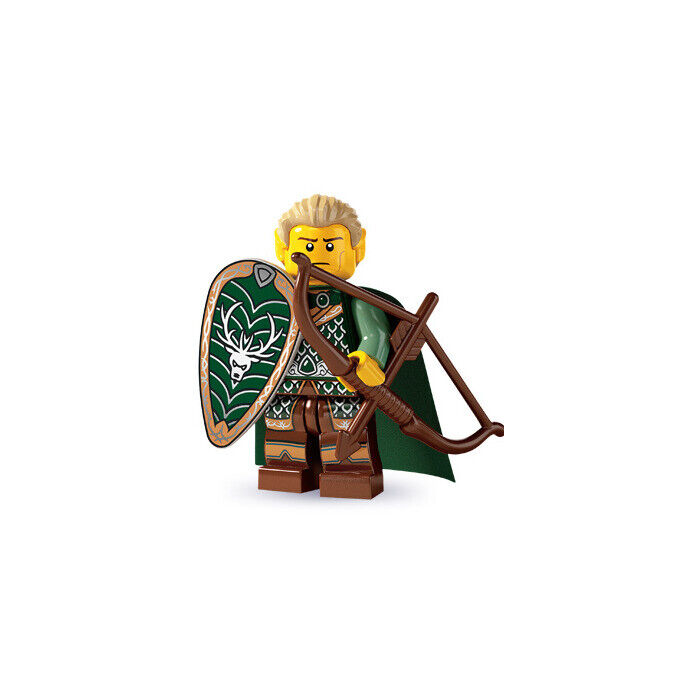 LEGO 8803 Series 4 from 2011 Collectible Minifigure Elf with ears, shield, cape and bow and arrow. Each collectible minifigure is brand new factory sealed in its original mint condition foil pack complete with accessories, display plate, and collector's leaflet. Condition: Sealed Shippi...