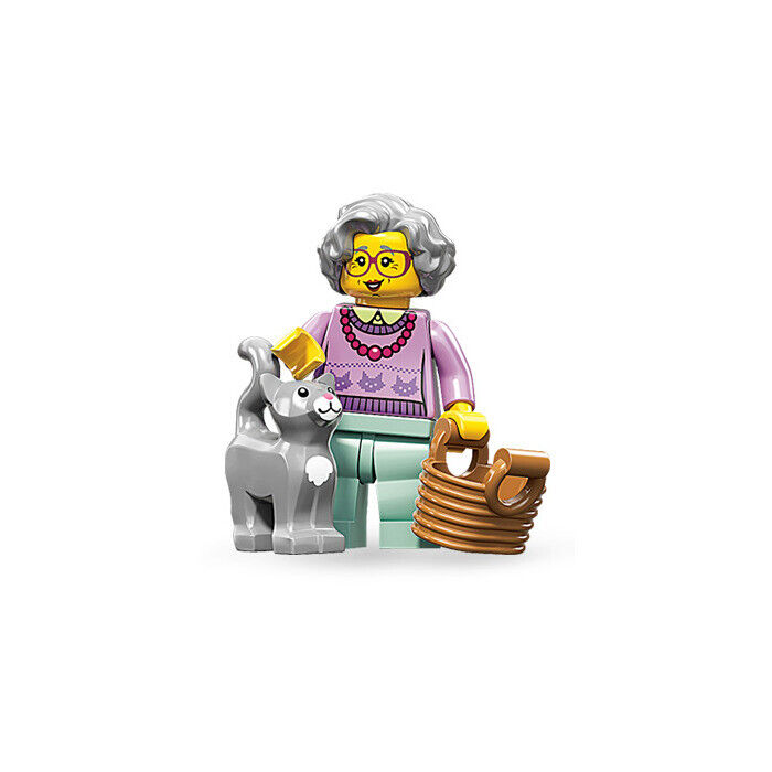 LEGO 71002 Series 11 Collectible Minifigures Grandma with a grey cat and brown basket. Each collectible minifigure is brand new factory sealed in its original mint condition foil pack complete with accessories, display plate, and collector's leaflet. Condition: Sealed Shipping: Free Sh...