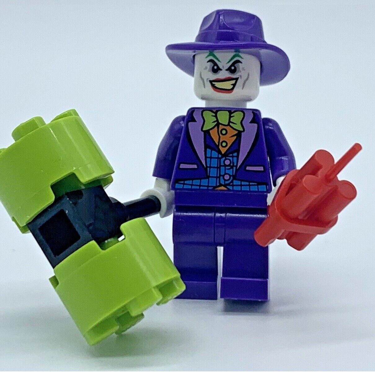 LEGO The Joker - Medium Azure Vest, Lime Bow Tie, Dark Purple Fedora (sh094). Comes with Hammer, Dynamite and extra Green Hair piece. This minifigure appears in the The Joker Steam Roller 76013 (SET NOT INCLUDED). Comes packaged in a clamshell to protect during shipping. Condition: New s...
