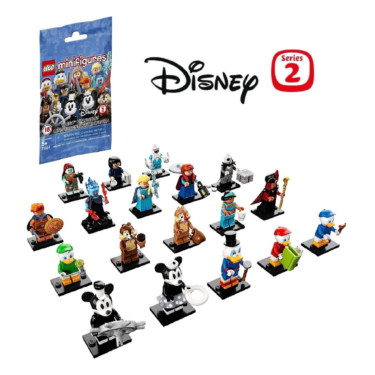 LEGO DISNEY Series 2 Collectible Minifigures 71024 - Complete Set of 18 (SEALED)