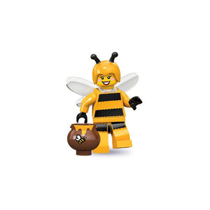 LEGO 71001 Series 10 from 2013 Collectible Minifigure Bumblebee Girl with jar of honey and wings. Each collectible minifigure is brand new factory sealed in its original mint condition foil pack complete with accessories, display plate, and collector's leaflet.
